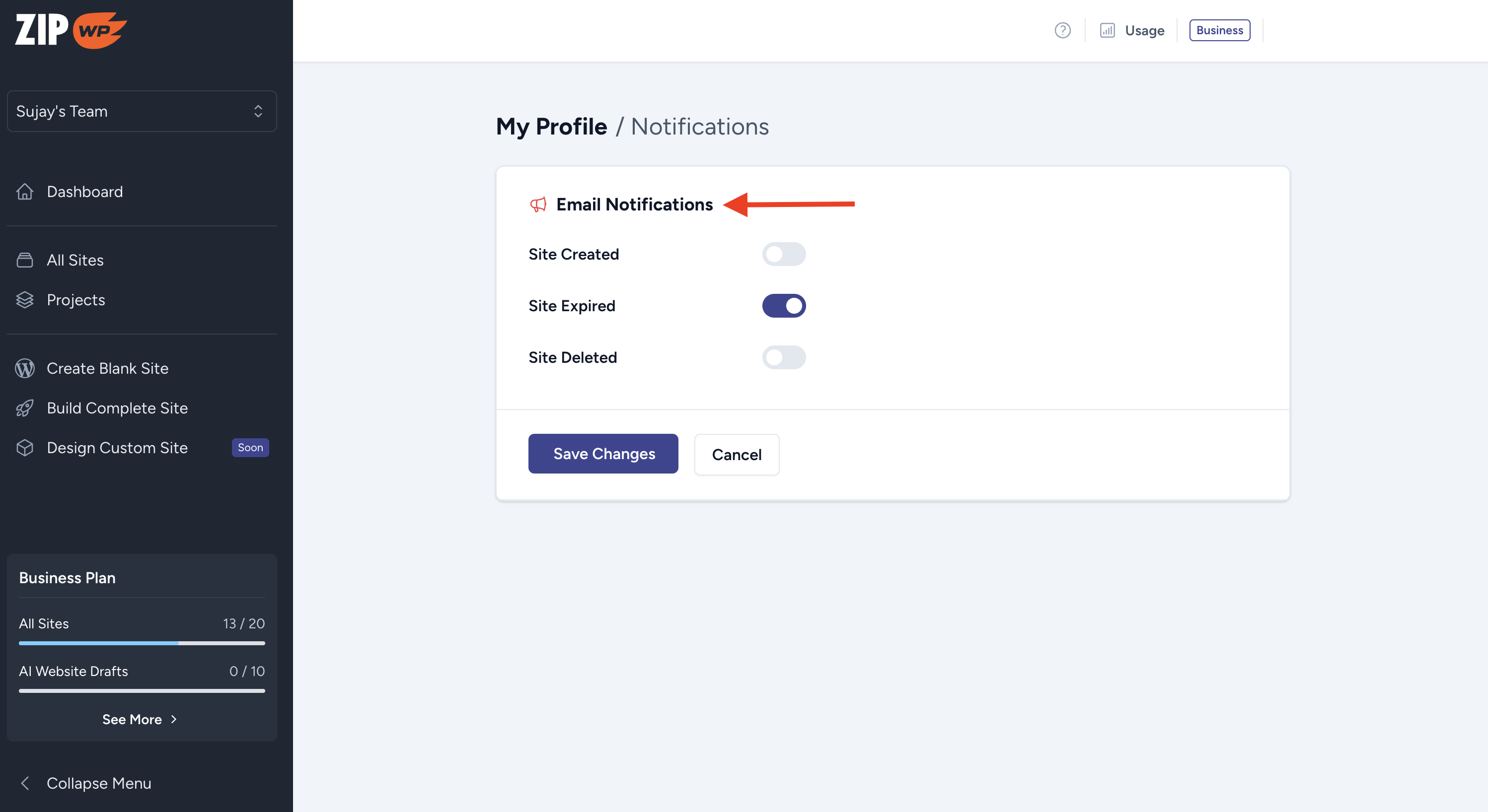 We’ve also added the option to adjust the email notifications you receive for different events, such as when a site is created, deleted, or expires. You can turn off notifications that are not important to you.